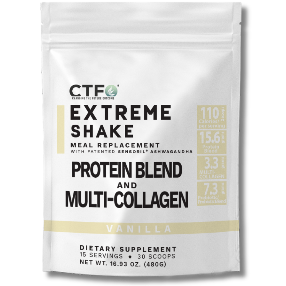 EXTREME SHAKE is an advanced, keto-friendly, PROTEIN & MULTI-COLLAGEN Prebiotic/Probiotic Shake with the added benefit of patented SENSORIL® Ashwagandha.