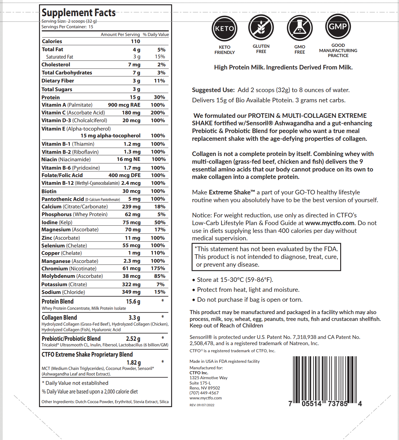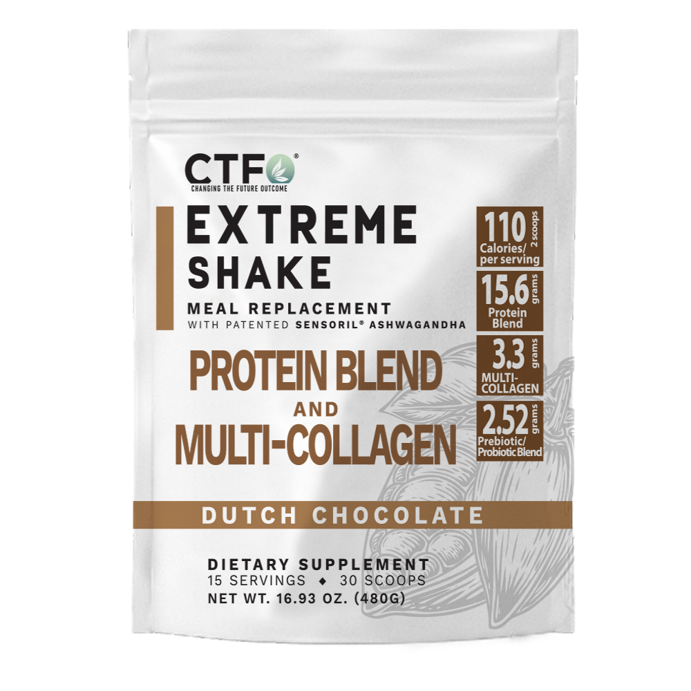 EXTREME SHAKE is an advanced, keto-friendly, PROTEIN & MULTI-COLLAGEN Prebiotic/Probiotic Shake with the added benefit of patented SENSORIL® Ashwagandha.